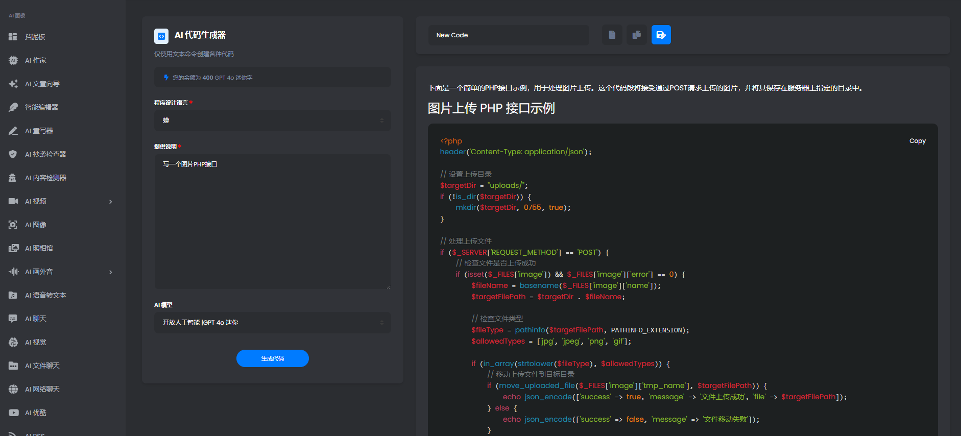 用户还可以通过 OpenAI DALL-E AI Solution 对图像进行描述来生成 AI 图像。 强大的后端管理面板